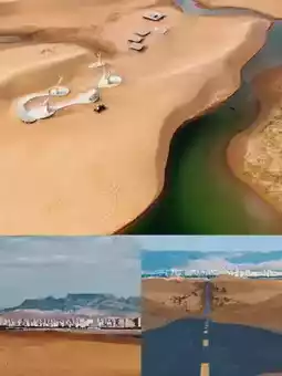 * 👍Features: Jinsha Bay is a natural scenic area integrating desert, lake, and grassland. The golden sand dunes and green lake complement each other, forming a unique desert landscape. Tourists can stroll on the sand dunes, feel the romance and mystery of the desert, or try sand sliding, experiencing the collision of speed and passion. In addition, Jinsha Bay offers camel riding, sunrise and sunset viewing, and other special projects, allowing tourists to fully enjoy the beauty and fun of the desert.