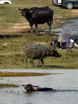 🐂There were villagers grazing their cattle nearby. They were quite pitiful. They were frightened by cars and people and kept soaking in the water.