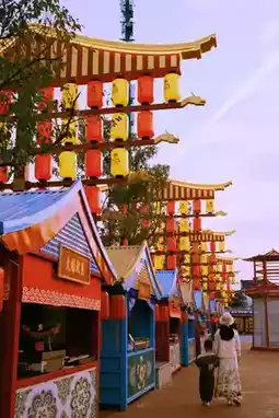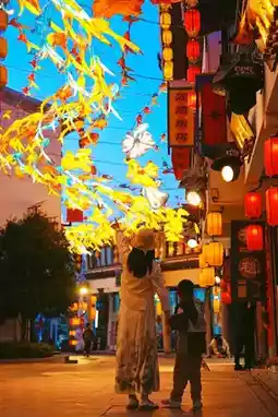➌ There will be an [acrobatics show] at around 18:40 in the market of Chacun. While everyone is watching the show, go to the alley next door to take pictures of [fish lanterns in the sky 🎏]. The lights will be on around 18:45, when the sky is blue. ➕️The fish lanterns are the best to take pictures of.