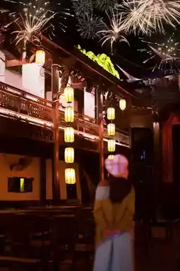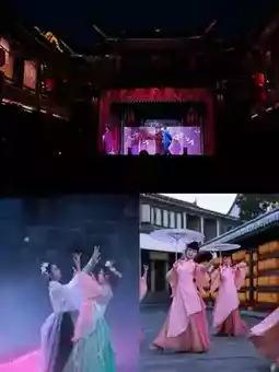 ➍ After taking photos of the fish lanterns, continue walking forward and watch the drama "Unbreakable Ancient Style" at the [Ancient Theater]. There is only one show. Or go to 【 Xinghua Yueye 】 to watch the electronic music performance at 19:10