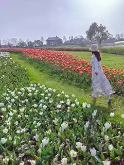 If you want to take a group photo of tulips, then here are the most complete varieties, with all colors: yellow, pink, white, and red. There are many other varieties of flowers in other places, such as cherry blossoms, poppies, violets, rape flowers, etc. You can wander in the sea of flowers during the day and meet the flower fairy.