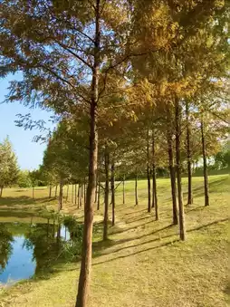 Opposite Matoutan Park is Dongxihu Lianhuahu Park, a lesser-known spot with fewer people. The Metasequoia Walkway is stunning with its light and shadow, perfect for a stroll!