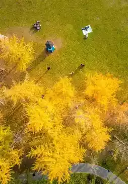 Ginkgo is the most colorful leaf in Wuhan. It is easy to see it in the streets and alleys. It is very dazzling in a sunny day. The ginkgo trees in Jiefang Park grow on a small hillside, which is convenient for taking photos.