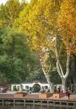 The plane tree changes color relatively late. After a long period of spring, summer and autumn, the leaves will slowly change color in late autumn and early winter, first turning yellow and then caramel color, and then fall in the cold wind in late winter, returning the warm sunshine that has been hidden for half a year to passers-by. Jiefang Park Road is the most classic "Wutong Avenue", while Lingbo Gate on Donghu South Road is blessed with blue sky and clear water.