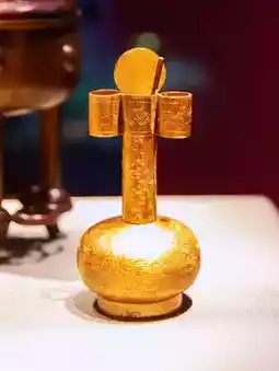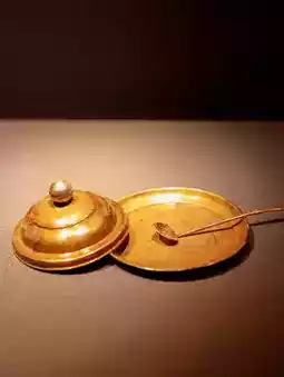 The emperor really did eat with a golden bowl! Not only a golden bowl, but also golden chopsticks, a golden spoon, a golden cup, a golden plate, and even a golden pot for cooking medicine. I used to think that the emperor's golden bowl was just a myth, like the empress of the east palace making pancakes and the empress of the west palace rolling green onions. I was surprised to find that it was all real gold, but also comforted to find that it was all things I had seen before and could imagine.