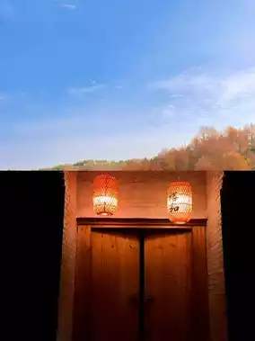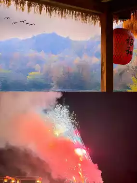 We live in a single-family villa with traditional Chinese style, which includes two extra-large bedrooms with separate bathrooms. The living room is a tea room, entertainment room and kitchen, and the dining table can be turned into a mahjong table for adults' entertainment. There is a large private hot spring pool and a small garden outside the villa. It is very pleasant to soak in the hot spring and chat.