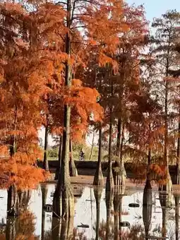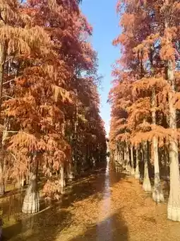 Water Forest: Numerous pond cypresses stand in the water, forming a water forest. In the morning or evening, the sunlight shines through the leaves onto the water, sparkling like a fairy tale world. Walking on the boardwalk, you feel like you're in a dream.