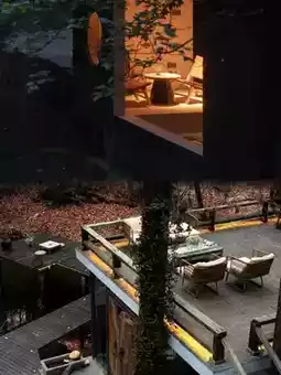 - Special architecture: In the depths of the forest, there is a black wooden house that seems to be suspended in the air🏡. This is where the bathhouse and healing room are located, seamlessly connected with the forest and pool, like a natural painting🖼.