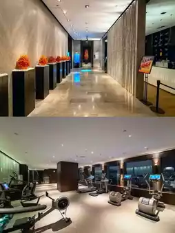 🛌Amenities: The room is decorated with various ancient books and artifacts, providing an immersive experience. The minibar is free, and there is a small sink. The room door uses a jade-like sensor, and the sinks in the bathroom and guest bathroom are made of natural stone, which are very distinctive. The gym is well-equipped with a full set of Technogym equipment, which is well-maintained. The "Step by Step Lotus" decoration on one side of the pool is very eye-catching and perfect for taking photos.