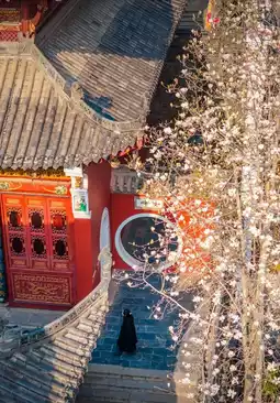 Coupled with the classical architecture of Changchun Temple, with its red walls, gray tiles, and flying eaves, a beautiful Chinese painting unfolds.🏮
