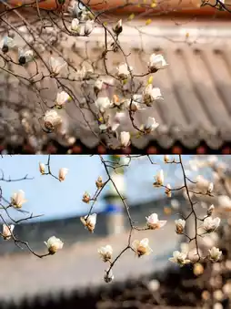 The pure white magnolias are as pure as snowflakes, while the pink ones are as delicate as the clouds on the horizon. As the gentle breeze blows, petals flutter down, transforming the stone path into a romantic flower path, as if you've stumbled into a fairyland.