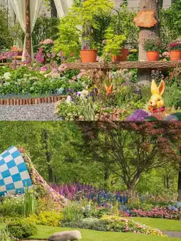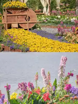 The exhibition's overall style leans towards a "Monet Garden" aesthetic, featuring a wide variety of vibrant and beautiful flowers.