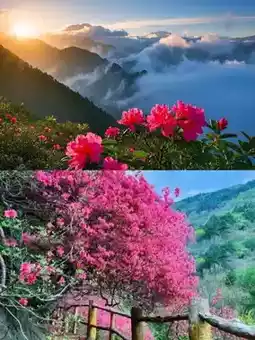 The fragrance of April has faded in the human world, and azaleas are seen in the misty mountains
