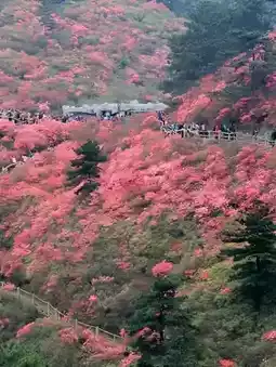 This is the largest azalea community in Central China. Every year in early April, nearly 100,000 acres of azaleas bloom here in a sea of red and pink, as vibrant as the sunset glow. It's like a beautiful ribbon floating in the green valleys, known as a "wonder of Central China."
