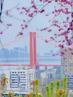 Climb Guishan Mountain, overlook the Yangtze River, and enjoy the cherry blossoms all over the mountain. It's so beautiful.