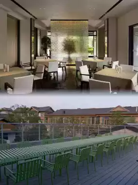 The restaurant features the concept of fresh seasonal ingredients from Hubei: breakfast includes a local combination of hot dry noodles with freshly ground soy milk, as well as Western-style Eggs Benedict. For lunch and dinner, we recommend the Huangpi Three Delicacies (fish balls, meat balls, and meat cakes) innovative platter, and the wild vegetable tofu is delivered daily by nearby farmers.