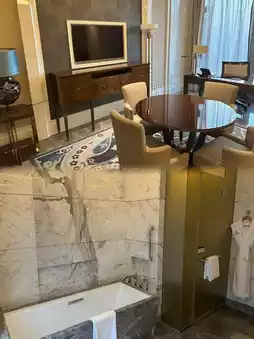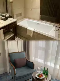 🛏️In-room Bathtub: My room had a full-size bathtub by the floor-to-ceiling window 🛁. Fill it up, soak in, and capture the cityscape behind you for a moody, atmospheric photo.