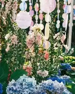 Multiple varieties bloom in competition, with soil pH levels creating gradient colors—even a single plant can display dreamy pink, blue, and purple effects.
