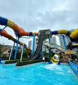 - **Mini Tornado** (kid-friendly slide for 0.8-1.5m children) → **Maya Water Fort** (world’s largest interactive water playground) → **Amazon Drift** (740m lazy river through tropical scenery)
