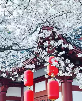Crouch by the lake for reflections! Pagoda piercing clouds, blossoms creating double illusions, hanfu girls skimming the water—the moment you click, spring folds into your lens.