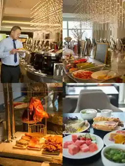 17th-floor restaurant opens at 6:30⏰. Fresh local staples like hot dry noodles/bean-skin rolls 🍜, plus drinks 🥤, coffee ☕️, milk 🥛.