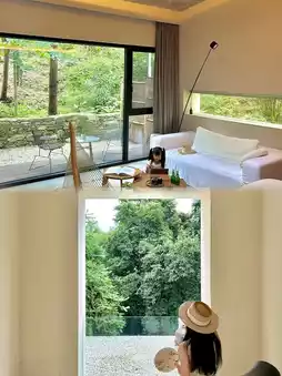 🏠 **Room Features**: There aren’t many rooms—only eight in total—with options like poolside rooms and tent rooms. I highly recommend booking a poolside room for better amenities and easy access to swimming! I stayed in the "Mountain View" room, which was so close to nature! A full wall of floor-to-ceiling windows lets you gaze at the mountains as soon as you open the curtains. At night, you can lie in bed and stargaze through the skylight—utterly romantic! The bathtub is huge, big enough for kids to swim in, and the balcony offers a stunning view of Mulan Mountain, perfect for sunset-watching while listening to the wind and cicadas. Pure bliss!