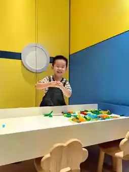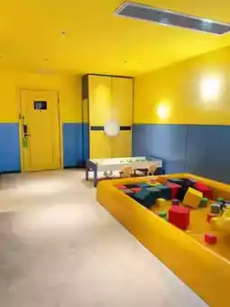 There's a space capsule, spiral staircase, building blocks, foam pit, and even a huge TV screen.