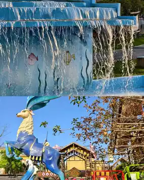 The scenic area features numerous amusement facilities such as pirate ships, colorful dry slides, jungle roller coasters, self-controlled airplanes, and rocking flying chairs, suitable for visitors of all ages.