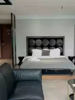 Panoramic floor-to-ceiling windows offering a stunning skyline view of Jiangcheng. Highly recommend the luxury city-view room featuring a giant screen projector and cloud sofa—watch movies while enjoying the neon lights. The minimalist tea table by the window is perfect for relaxing and taking aesthetic photos against the picturesque cityscape. Truly amazing!