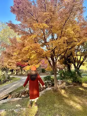 The maple trees in Moshan Bonsai Garden are like a gift of gratitude! A single tree is brilliantly red and eye-catching, surrounded by a few orange-yellow maples. Few people and beautiful scenery~ Other areas of Moshan also have colorful autumn foliage scattered around.