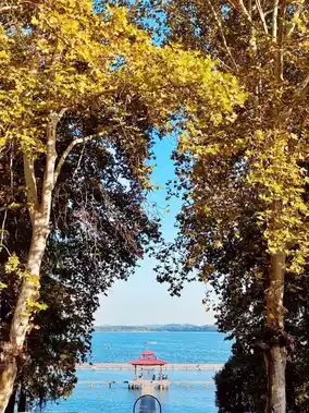 A lesser-known route deeper into Tingtao, looking through the tall sweet maples of the Deyou Open-air Theater, the Tingtao swimming area looks like the sea. Passing through the Phoenix Tree Avenue, there is a hidden Jiangnan-style garden.