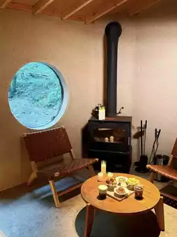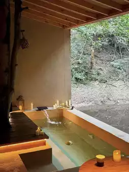 Enjoy tea and snacks while soaking in the hot spring in the forest.