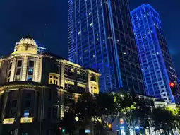 At night, Wuhan's Shunfeng Tea House Wharf offers a stunning red and blue night view. The riverside lights are transparent, reflecting colorful images, and the modern buildings look particularly cool under the lights. Every snapshot is a masterpiece of the city. This stop is perfect for slowly soaking in the city's nighttime atmosphere. No need to rush; the river breeze and building lights create a romantic and vibrant Wuhan nightscape.