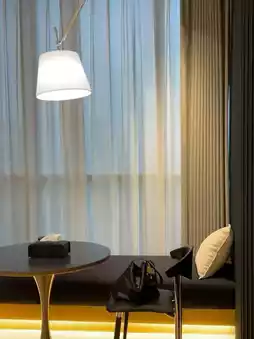 I booked the "Shadow" city view room; the 55㎡ space is luxurious enough to dance in! The half sofa faces the intercity line, watching the city's twinkling lights at night.
