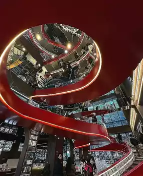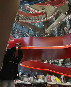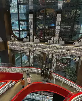But I don’t know if it’s because it’s newly opened or for some other reason, but the books are all wrapped in plastic film with prices on the back. They’re for sale, so there aren’t many books to read on site. I thought it was library mode, I was wrong. There are very few people reading books, most of them come to take pictures. Although the overall decoration is beautiful, it is only suitable for a formality. The atmosphere of the decoration is not suitable for reading. A lot of light reflected from the glass is not good for the eyes.