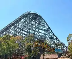 This is a rare outdoor wooden roller coaster! It's one of those high-speed roller coasters that drops from a high altitude! It's packed with surprises, scares, and excitement, giving you unforgettable experiences! It's a similar experience, so you must try it!