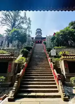 The architectural complex of Guangji Temple is built on the mountain. We walked from bottom to top through the Hall of Heavenly Kings (also known as the "Mountain Gate"), the Hall of Medicine Buddha, the Hall of the Great Buddha (also known as the "Big Buddha Hall"), the Hall of Ksitigarbha Bodhisattva and the Guangji Temple Pagoda. There are 88 steps in total. The four-story halls extend from the foot of the mountain to halfway up the mountain. The back hall is dozens of meters higher than the front hall.