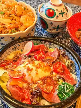 The hot spring egg is smooth and delicious, and the tenderness of the beef and the freshness of the salad are intertwined together. It is really a magical tool to relieve greasiness.