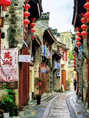 A bustling commercial street, the bluestone road is quaint, and there are many delicacies