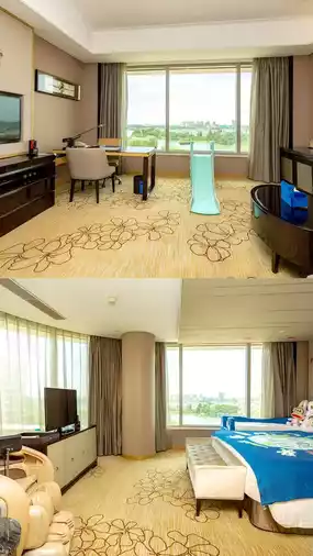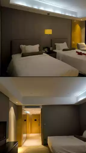 ✅ The hotel lobby is grand and luxurious, with an elegant and luxurious crystal chandelier in the middle. The hotel has only a few floors, about 12 floors, but it is wide, with many rooms.