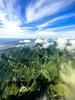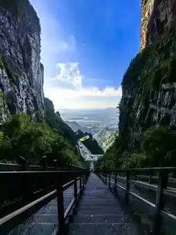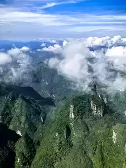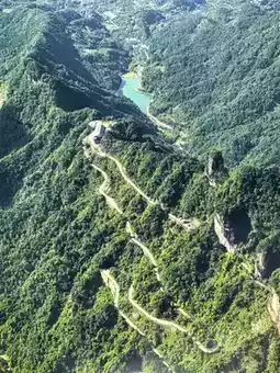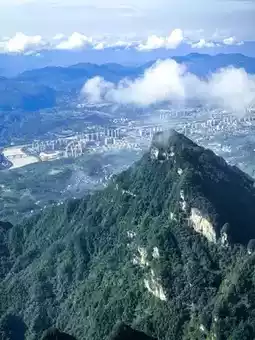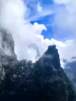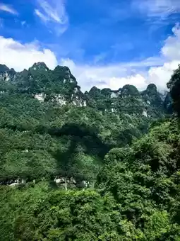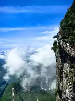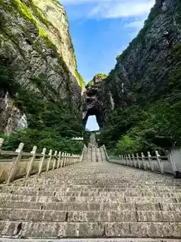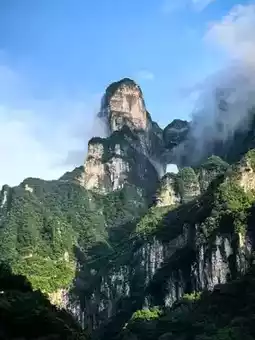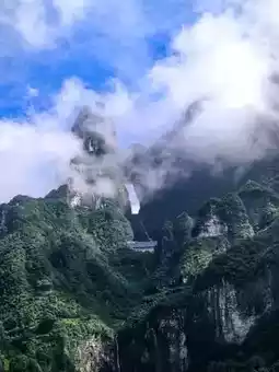Tianmen Mountain is located in Yongding District, Zhangjiajie City, Hunan Province. It is the highest mountain in Zhangjiajie. The mountaintop is flat and covered with a complete secondary forest. The ancient trees are towering, the vines are entwined, and the moss is everywhere. The mountain combines peaks, rocks, springs, streams, clouds, and forests. It is majestic, unique, beautiful, dangerous, and secluded. It is known as the most beautiful sky garden in the world. On this day, I drove through Zhangjiajie City and saw a very majestic cave from afar. It was the Tianmen Cave, the gateway to Tianmen Mountain. It stood high in the clouds, like a wide-open door to a mysterious world. It seemed to be beckoning me, so I excitedly boarded the cable car and ascended Tianmen Mountain. I strolled along the thrilling Ghost Valley Plank Road and felt like I had stepped into a fairyland. The blue water flowed around the mountains, and the green trees reflected in the water. Occasionally, I heard the chirping of birds, adding a touch of vitality and vigor. I climbed 999 steps and reached Tianmen Cave. Standing at the entrance, I looked down at the mountains. The peaks were like islands, the scenery was magnificent, and the mountain scenery was unique, like a real-life fairyland painting. Oh, Tianmen Mountain! You are beautiful because of the scenery. Every emerald peak is a poem, every ray of cloud and shadow is a dream, making my heart flutter and my time in the mountains as beautiful as ever.