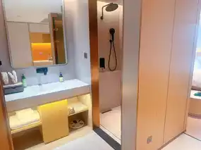 - The room is clean and comfortable, with skin-friendly bedding and a dry-wet separated bathroom