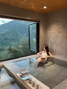 Independent mountain view hot spring house, can be used for 90 minutes