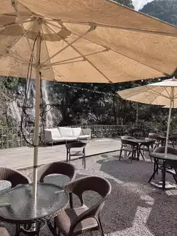 You cannot enter the outdoor seating area No. 3 of the waterfall without consumption!