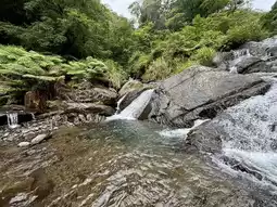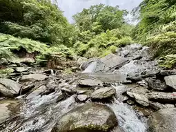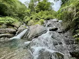 At the beginning, the first 1.2 kilometers of Xikeng Forest Trail are spacious and obvious. After that, the road radius narrows to a single track. A total of four streams are crossed to the Ayu Valley (about 4.5K) where the two waterfalls meet. This is currently the best end point. The valley has a wide view and you can step on the water for a short time to enjoy the beauty of the natural mountain valley.
