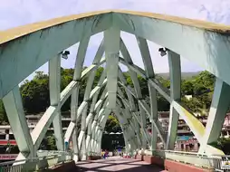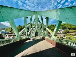 A must-see romantic landmark in Wulai! This mint-green bridge spans the river amidst lush mountains, creating a refreshing and warm atmosphere. ðŋðĶ At night, the bridge is illuminated with color-changing LED lights, adding a captivating charm to strollers and photo-takers. ðļ
