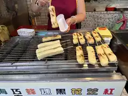 There are small stalls selling special millet mochi, bamboo rice, wild boar sausage, etc.