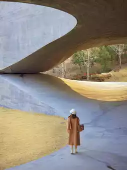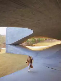 Designed by Zhang Ke, a winding and flowing boulder building was built between the mountains and rivers, with a great sense of design