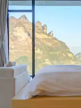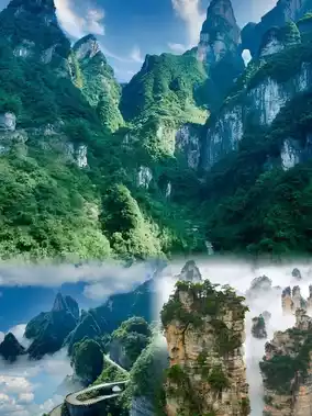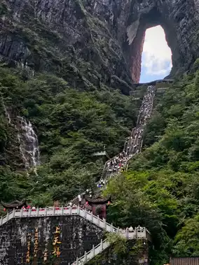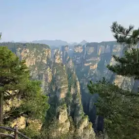 Zhangjiajie Wulingyuan Park is divided into upper and lower parts, connected by a glass elevator or cable car. Both of these routes will take you to the top of the park to see the natural stone pillars.