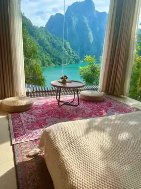 The room we booked offers a breathtaking mountain and water view the moment you open your eyes 🏞️! Although it doesn’t have the luxury decor of a five-star hotel, nature lovers 🌲 and those who yearn for a relaxed and carefree atmosphere will definitely fall in love with this place~